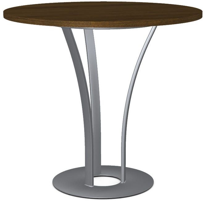 Walnut veneer tabletop with a 42" diameter.