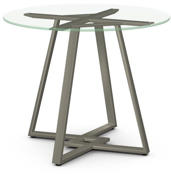 Clear glass tabletop with a 36" diameter.