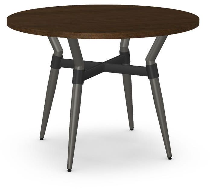 Walnut veneer tabletop with a 42" diameter.