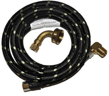 Kit includes (1) 6-ft L braided hose, (1) electrical wire strain relief fitting, (1) 3/8-in brass compression fitting with elbow and installation instructions