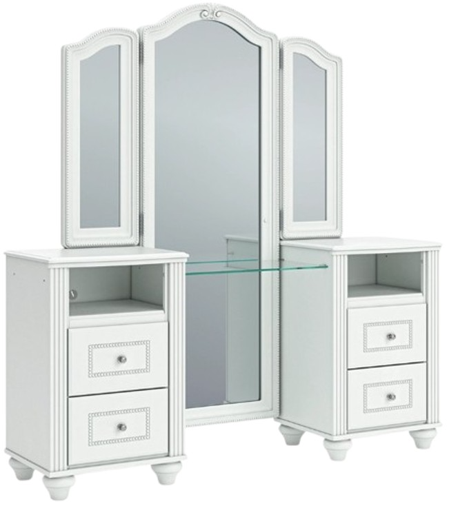 Fit for a princess. This vanity with mirror’s crisp matte white finish pairs with charming ornate beading details—perfect for your girly girl. The mirror's ambient lighting adds a touch of romance, while the bun feet and crystal knobs on the cabinet are the crowning touches to make your little one feel like royalty.Read More